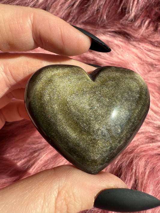 Stunning Flashy Goldensheen Obsidian Medium Size Heart Carving - K