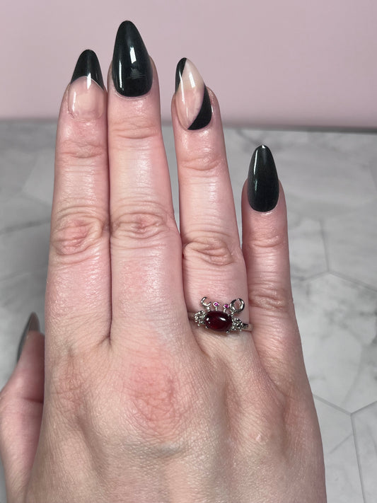 Stunning Garnet with Clear Quartz Halo Adjustable Ring