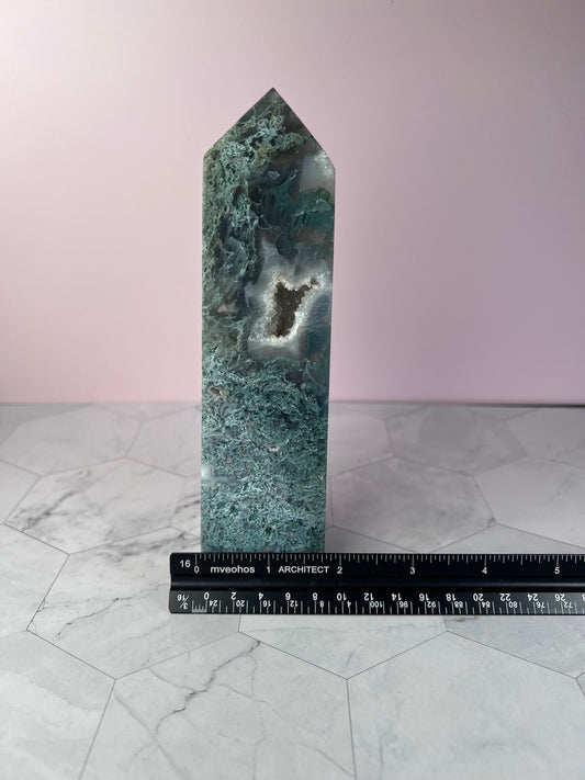 Stunning High Quality Druzy Moss Agate Tower