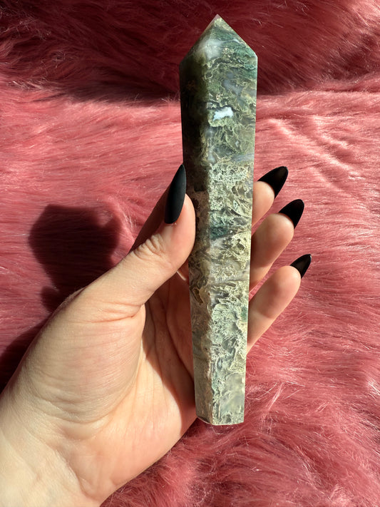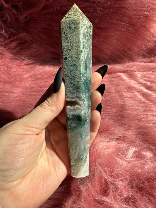 Stunning High Quality Moss Agate Wand with Druzy Pocket - A