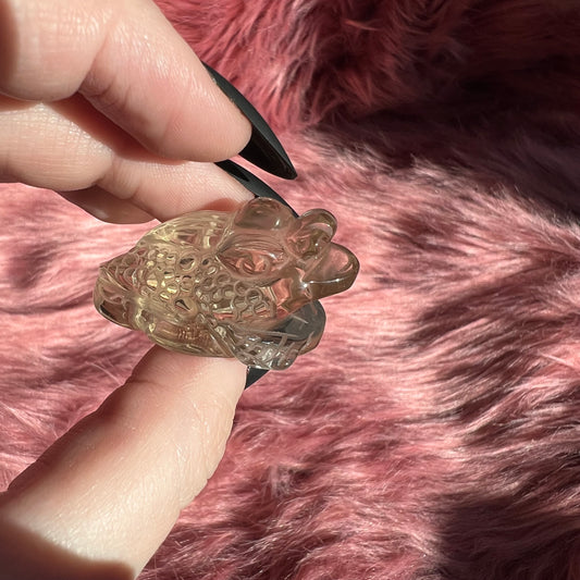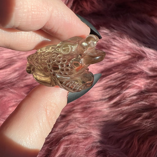 Stunning High Quality Small Size Smoky Quartz Money Toad Carving - I