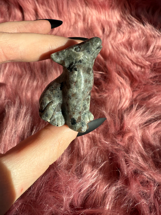 Stunning High Quality Yooperlite (UV Reactive) Howling Wolf Carving - B