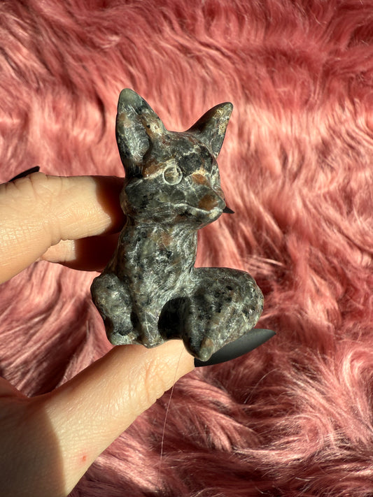 Stunning High Quality Yooperlite (UV Reactive) Sitting Fox Carving