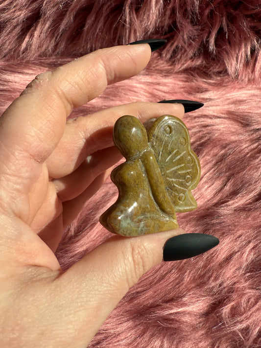 Stunning Yellow Moss Agate Fairy Crystal Carving - B