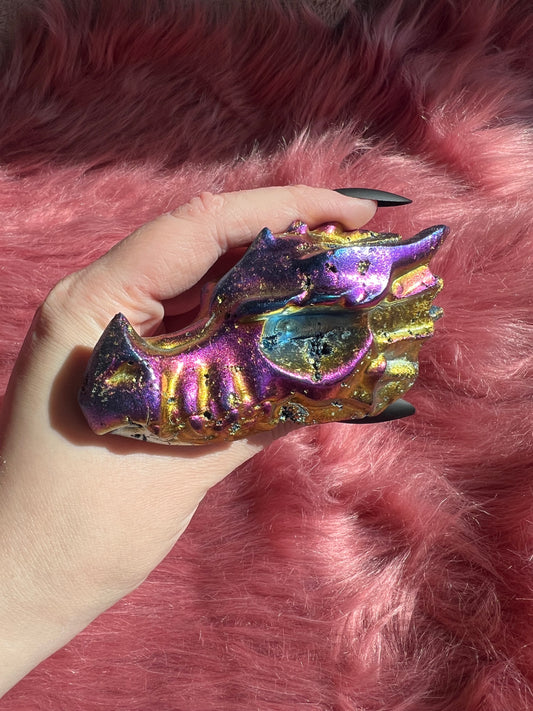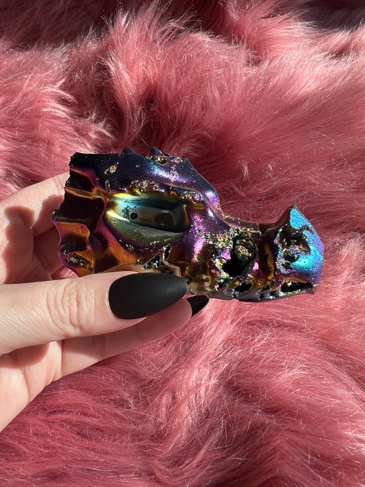 Stunning Rainbow Aura Dragon Skull - A (Man Made Crystal)