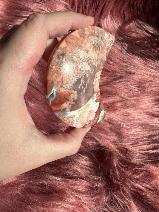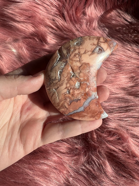 Stunning Pink Sakura (Cotton Candy) Agate Moon Carving