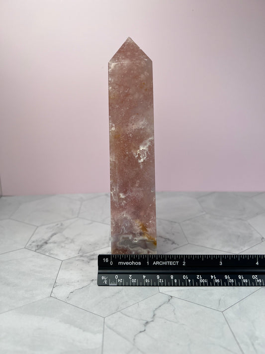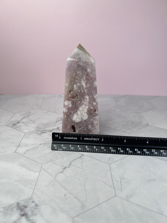 ONE (1) Stunning High Quality Pink Amethyst with Flower Agate Tower