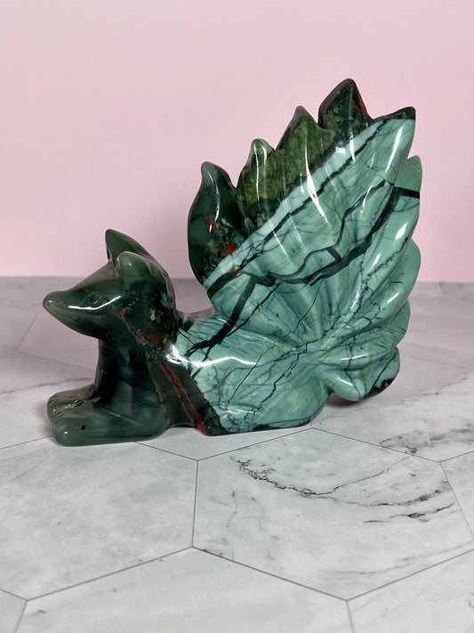ONE (1) Stunning High Quality African Bloodstone Ninetail Fox Carving