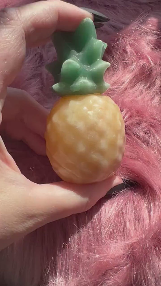 ONE (1) Stunning High Quality Yellow Calcite and Green Aventurine Pineapple Carving