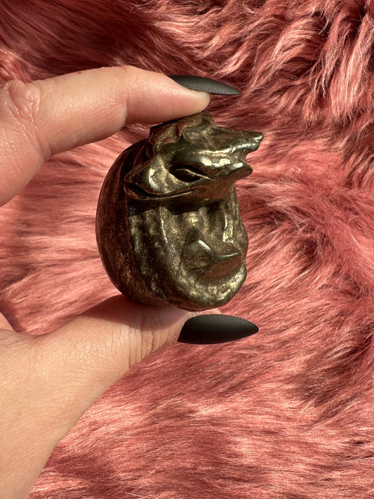 Stunning High Quality Pyrite Dragon in Egg Carving