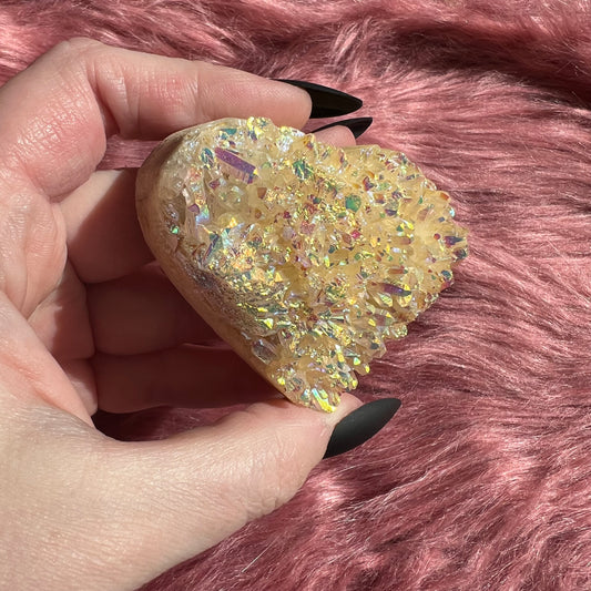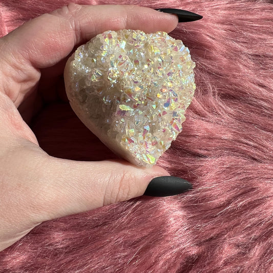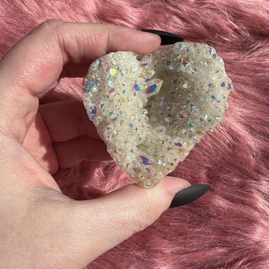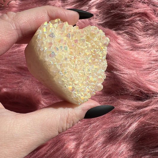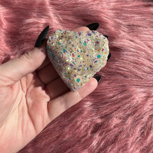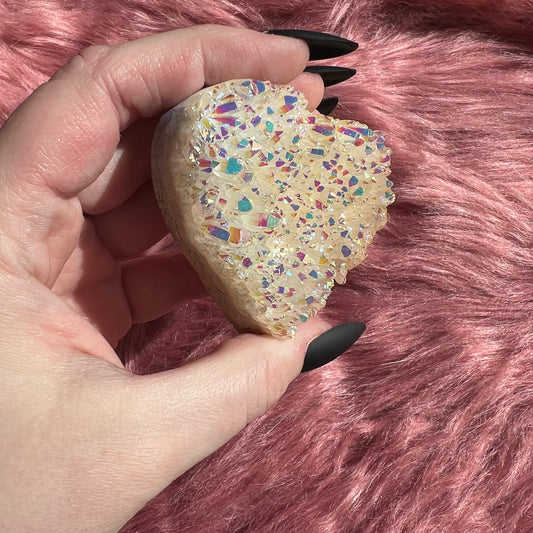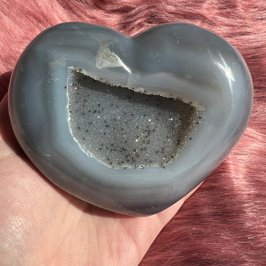Stunning Extra Large Half Raw Agate with Druzy Heart Carving