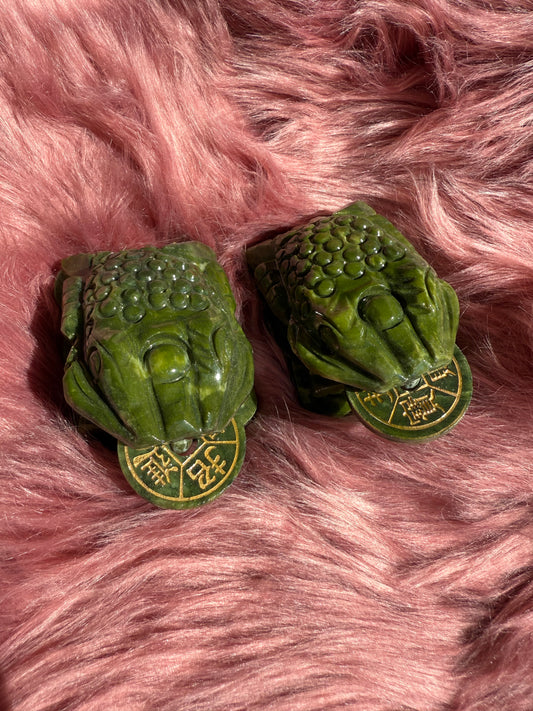 Stunning High Quality Green Jade Money Toad Carving