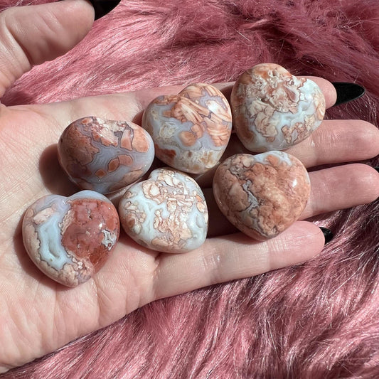 ONE (1) Stunning Pink Sakura (Cotton Candy) Agate Small Heart - Intuitively Selected