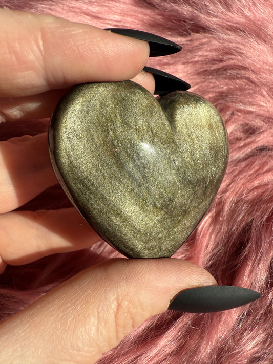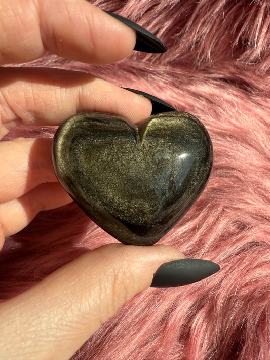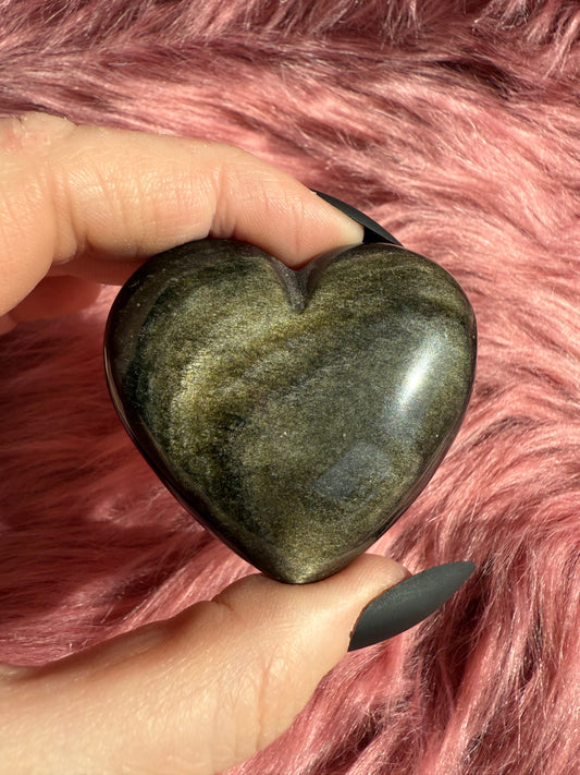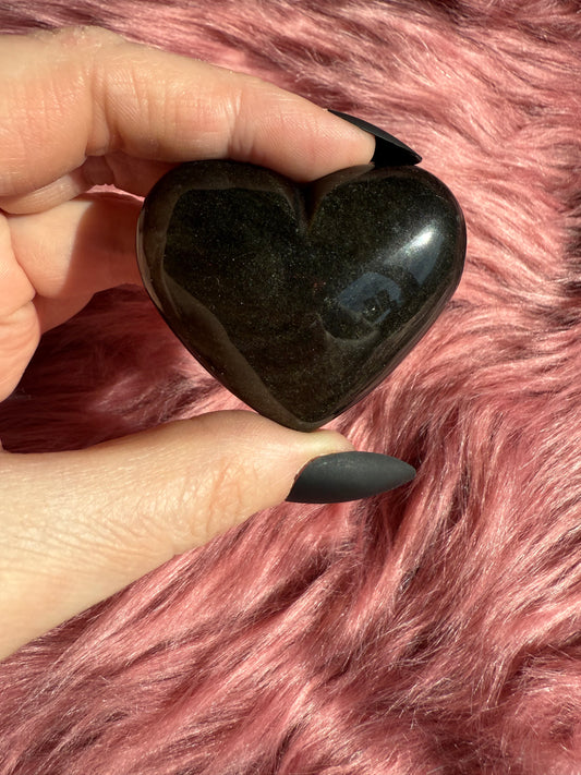 Stunning Flashy Goldensheen Obsidian Medium Size Heart Carving - H