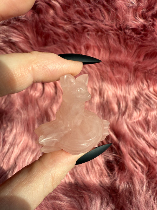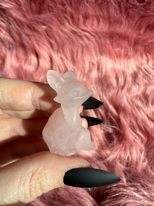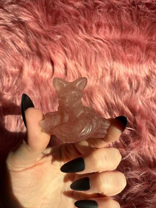 Stunning High Quality Pink Quartz Fox Carving