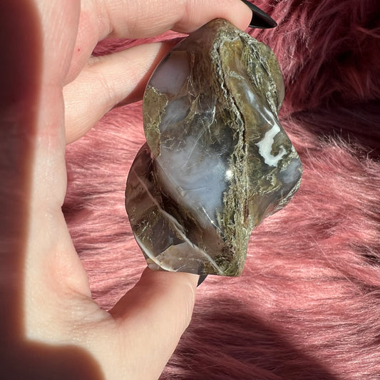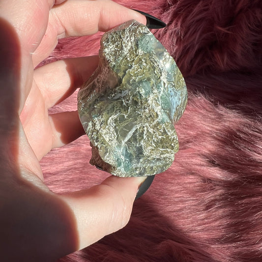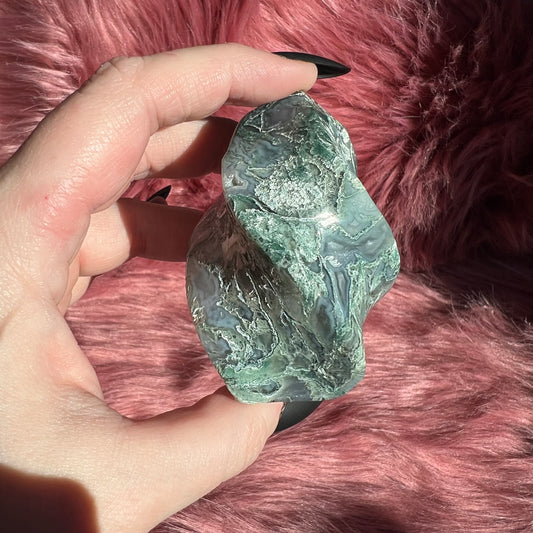 Stunning Blue Green Moss Agate with Quartz Goddess Body - E