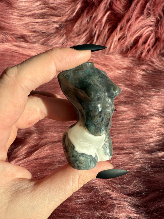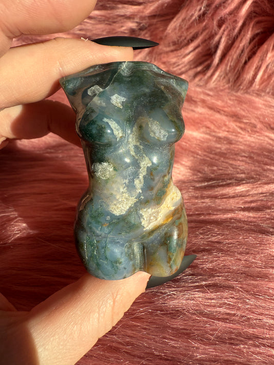 Stunning Moss Agate Goddess Body with Druzy Pocket - A