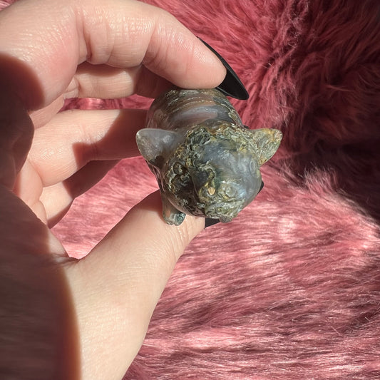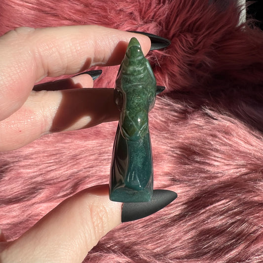 Stunning High Quality Moss Agate Unicorn Carving - E