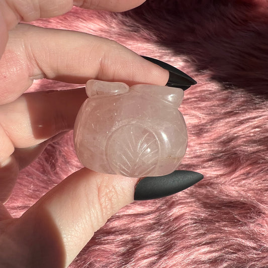 Stunning High Quality Rose Quartz Bunny Bun Carving