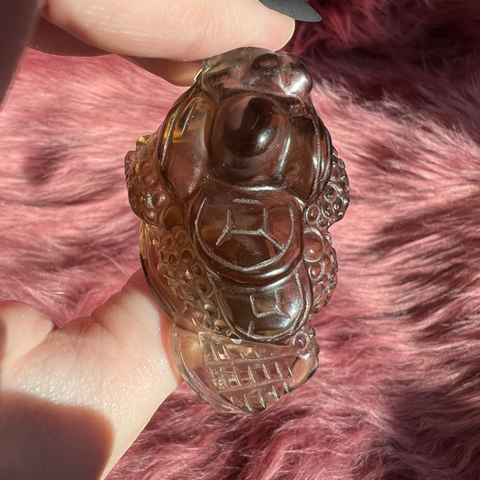 Stunning High Quality Small Size Smoky Quartz Money Toad Carving - I