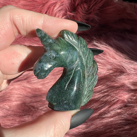 Stunning High Quality Moss Agate Unicorn Carving - C