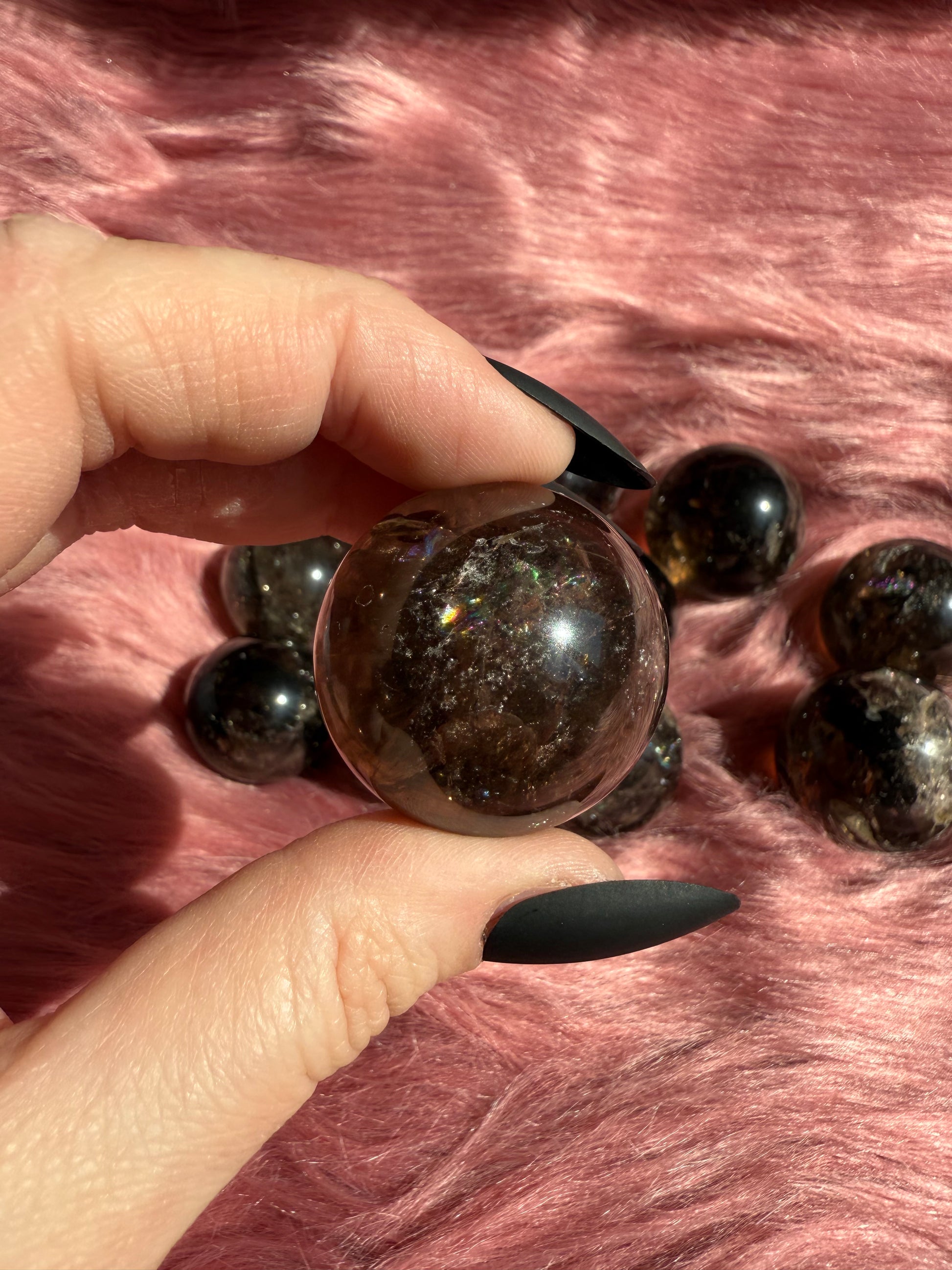 ONE (1) Stunning Flashy Heat Treated Smoky Quartz Sphere - Intuitively Selected