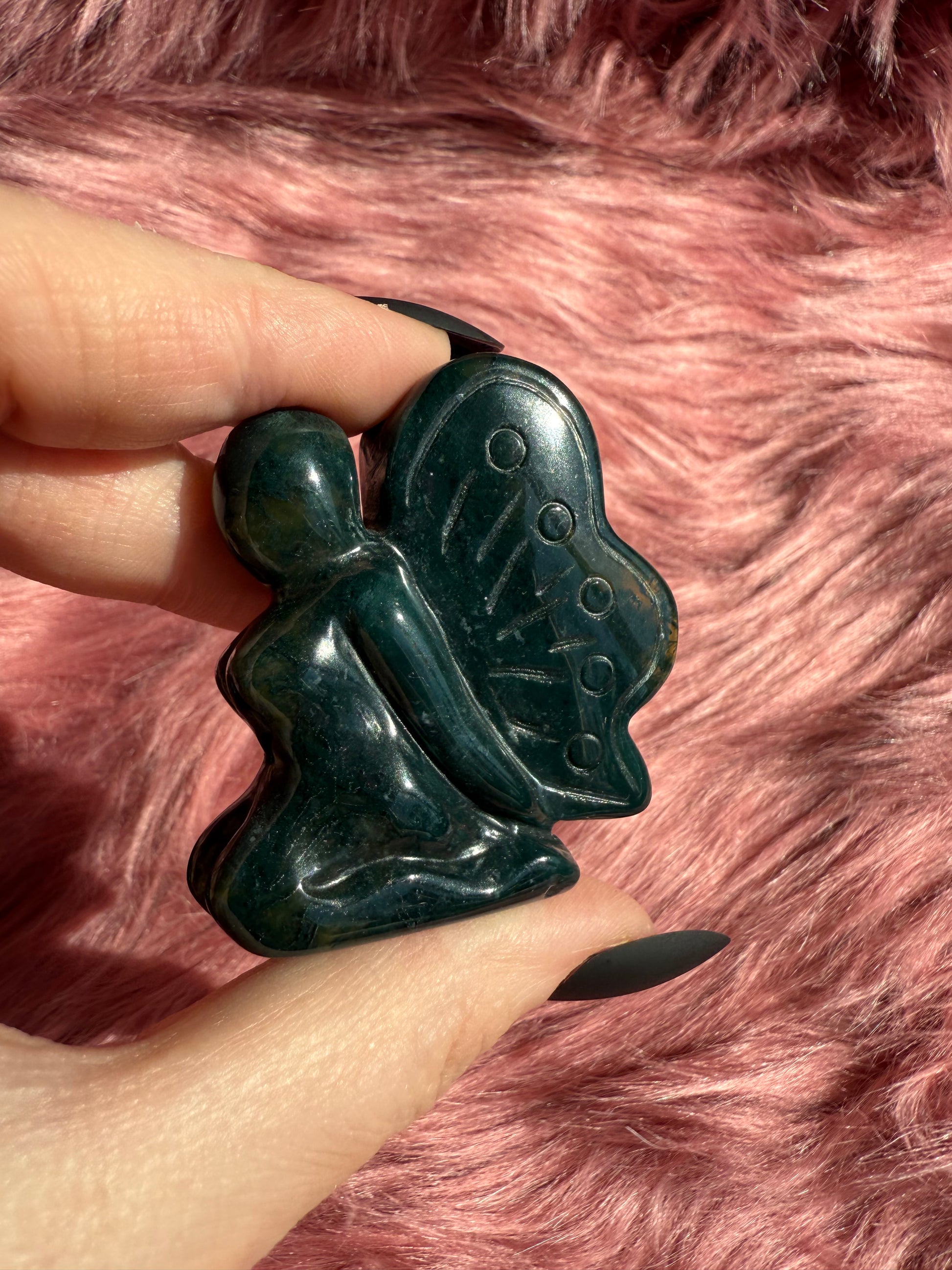 Stunning Blue Green Moss Agate Fairy Crystal Carving - C