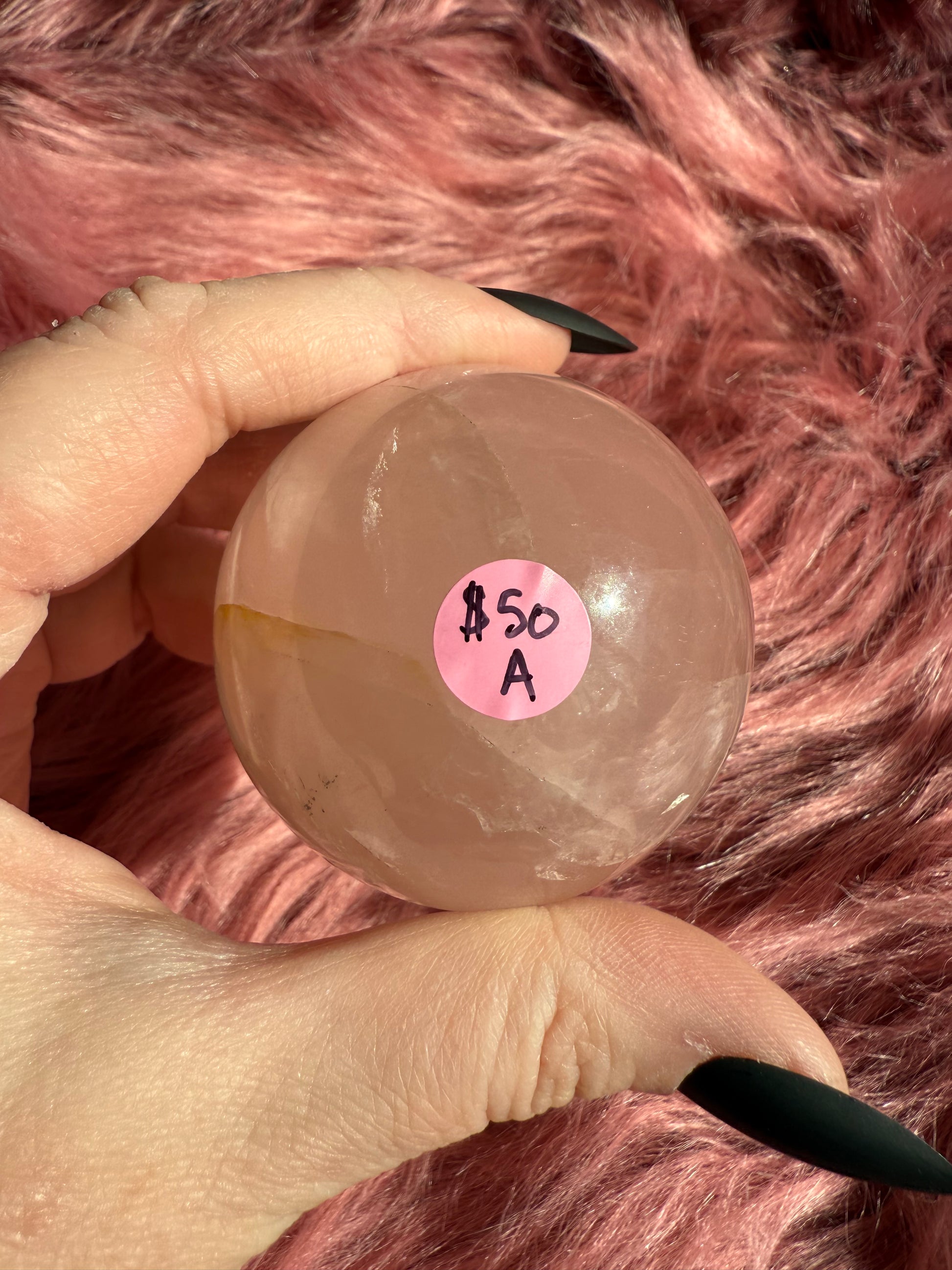 Stunning Flashy Rose Quartz with Golden Healer Crystal Sphere A