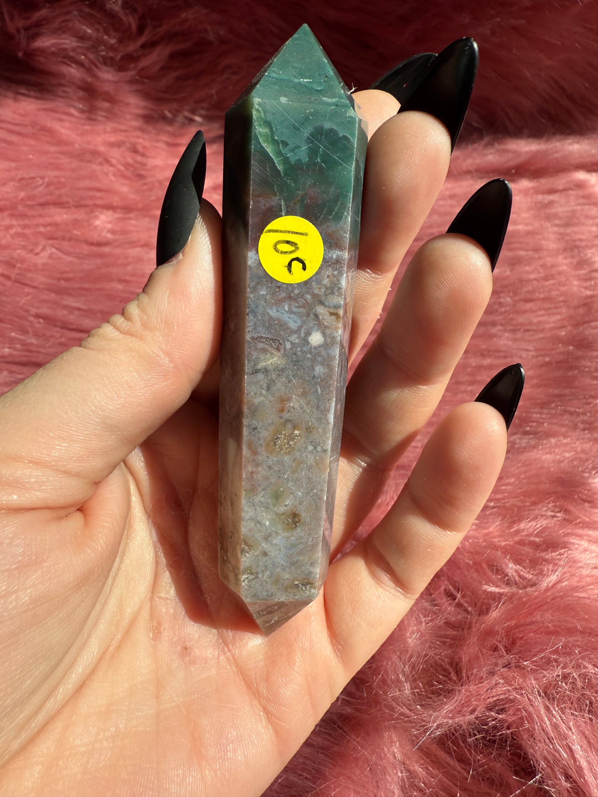Stunning High Quality Sea Jasper Double Terminated Point with Druzy Pocket - C