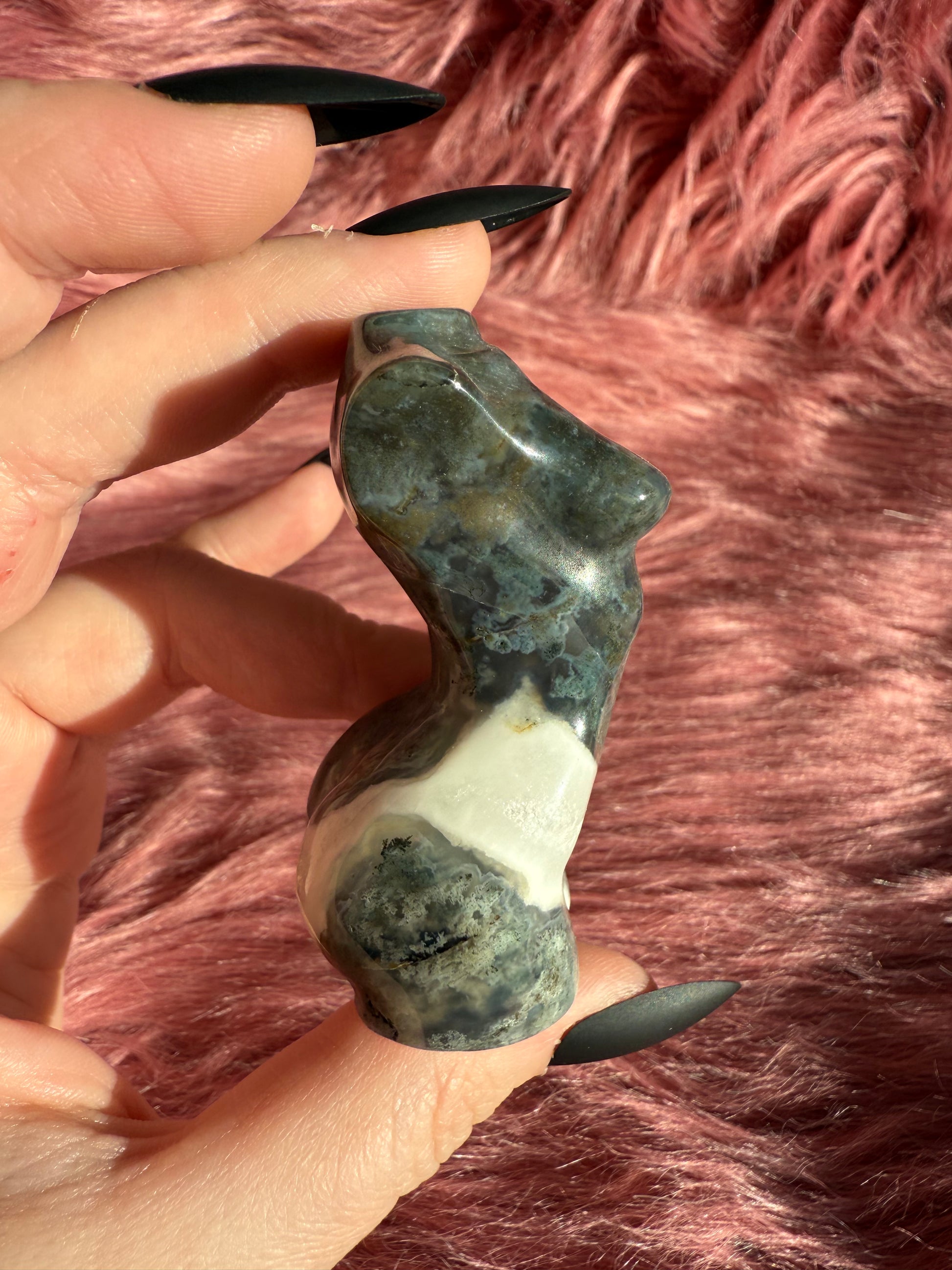 Stunning Blue Green Moss Agate with Quartz Goddess Body - D